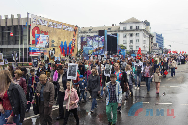"Эти люди воспитаны так. Воспитаны хранить вечный огонь памяти о героях войны в своих сердцах. В память об отцах, дедах и прадедах они объединяются в едином шествии, едином порыве празднования Дня Великой Победы. Этот вечный огонь не даёт им возможности усидеть на месте. Он выталкивает их 9 мая на улицы, расставляет по шеренгам, заставляет становиться плечом к плечу, как стояли их отцы, деды и прадеды и идти на поклон памятникам героям-победителям. Чувство единства в таком строю не передаваемо! Это чувство победителей. Оно заложено в нас предками и завещано нам сохранить и передать своим детям, внукам и правнукам. Вот для чего это нужно живым!