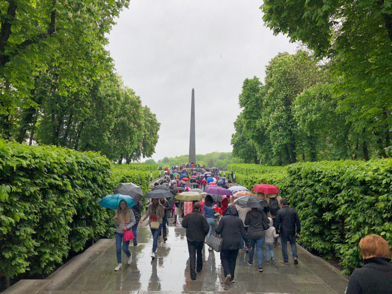 Совместно с политиками на мемориале представители УПЦ провели панихиду о погибших во Второй мировой, после чего официальная делегация ушла. На протяжении дня к мемориалу Славы продолжают прибывать люди, которые также решили посетить память погибших.