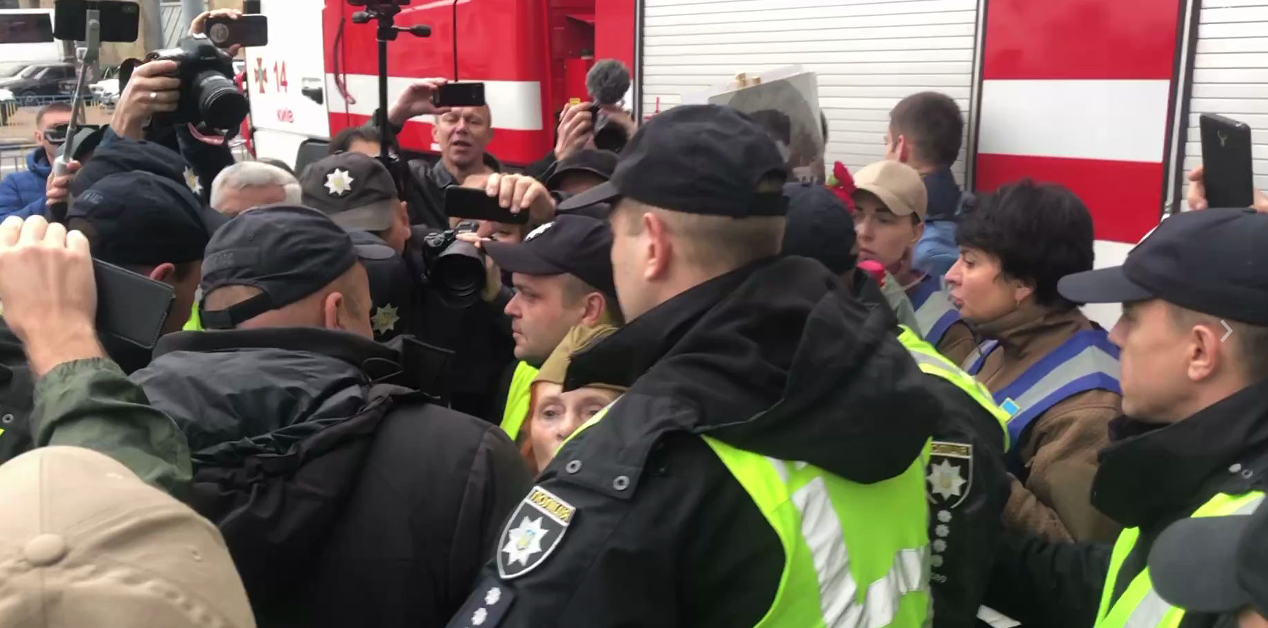 За 50 метров до места возложения цветов им перегородило дорогу около 20 радикалов. Часть из них была в камуфляжной форме с надписью "Национальные дружины". Некоторые несли портреты участников УПА.