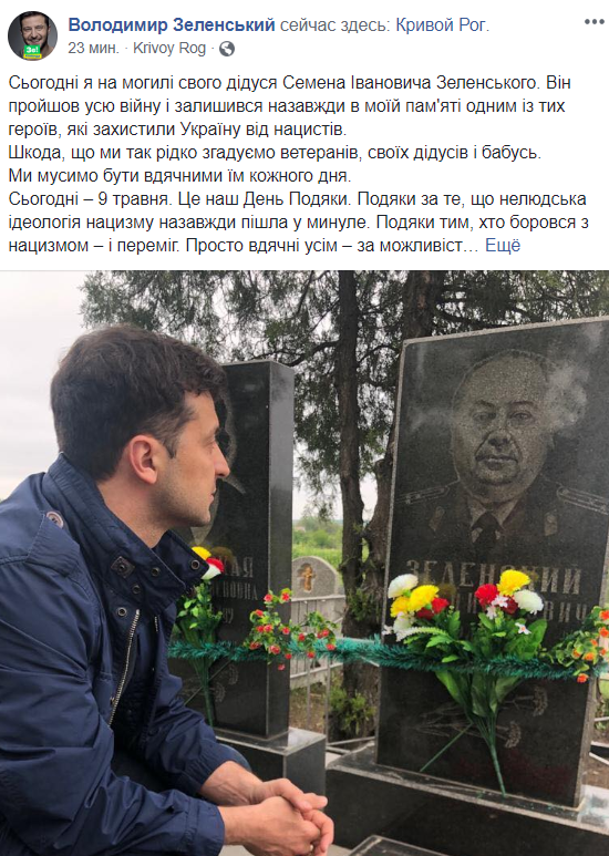 11:22 Владимир Зеленский сегодня приехал в Кривой Рог и пришел на могилу к дедушке-фронтовику Семену Ивановичу Зеленскому.