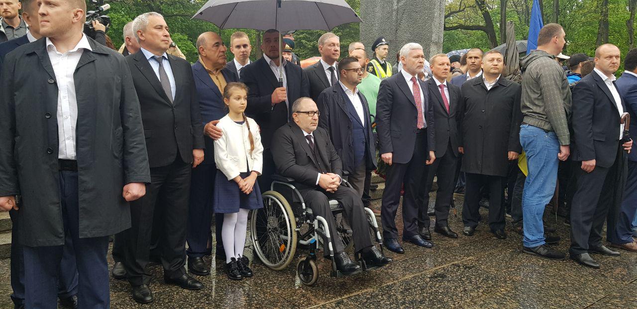 Шестивие ведут участники "Бессмертного полка". Колонну возглавили ветераны войны. В мероприятиях принял участие и мэр Геннадий Кернес. Рядом с ним - нардепы Грановский и Рабинович.