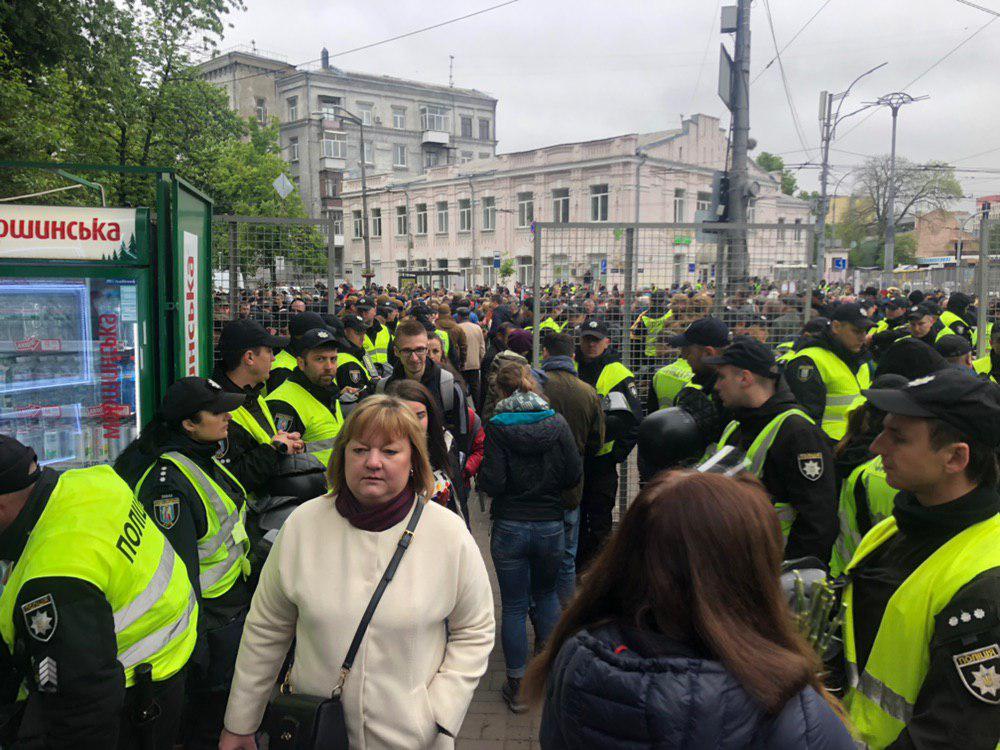 9:48 Вокруг метро Арсенальная - забор с пропускной системой и много-много полиции.