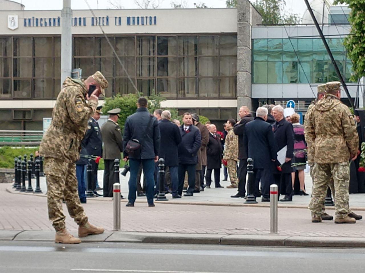 9:26 У Киевского дворца детей и юношества, где пройдут официальные мероприятия, замечен министр обороны Степан Полторак.
