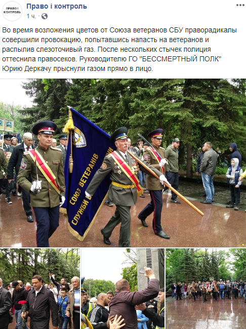 В этом году все гораздо спокойнее. Активность ультраправых ограничилась в основном перфомансами. Исключением стал Харьков, где одному из организаторов "Бессмертного полка" брызнули в лицо из газового баллончика. В целом стычки были, но происходили они без фанатизма и серьезных последствий.
