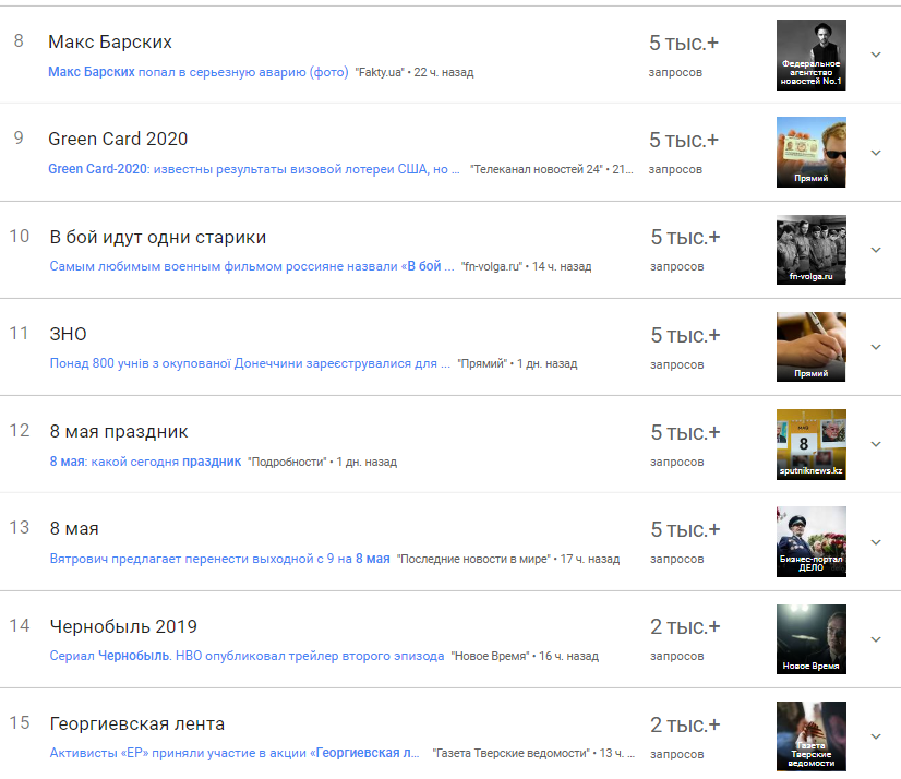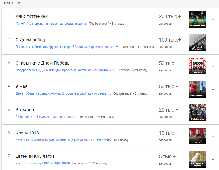 10:50 Интересно, что продвигаемый властями День примирения 8 мая даже не вышел вчера в тренды Google по Украине. Это говорит о том, что основная масса населения не воспринимает этот день праздничным и не совсем понимает, кто с кем должен примиряться.