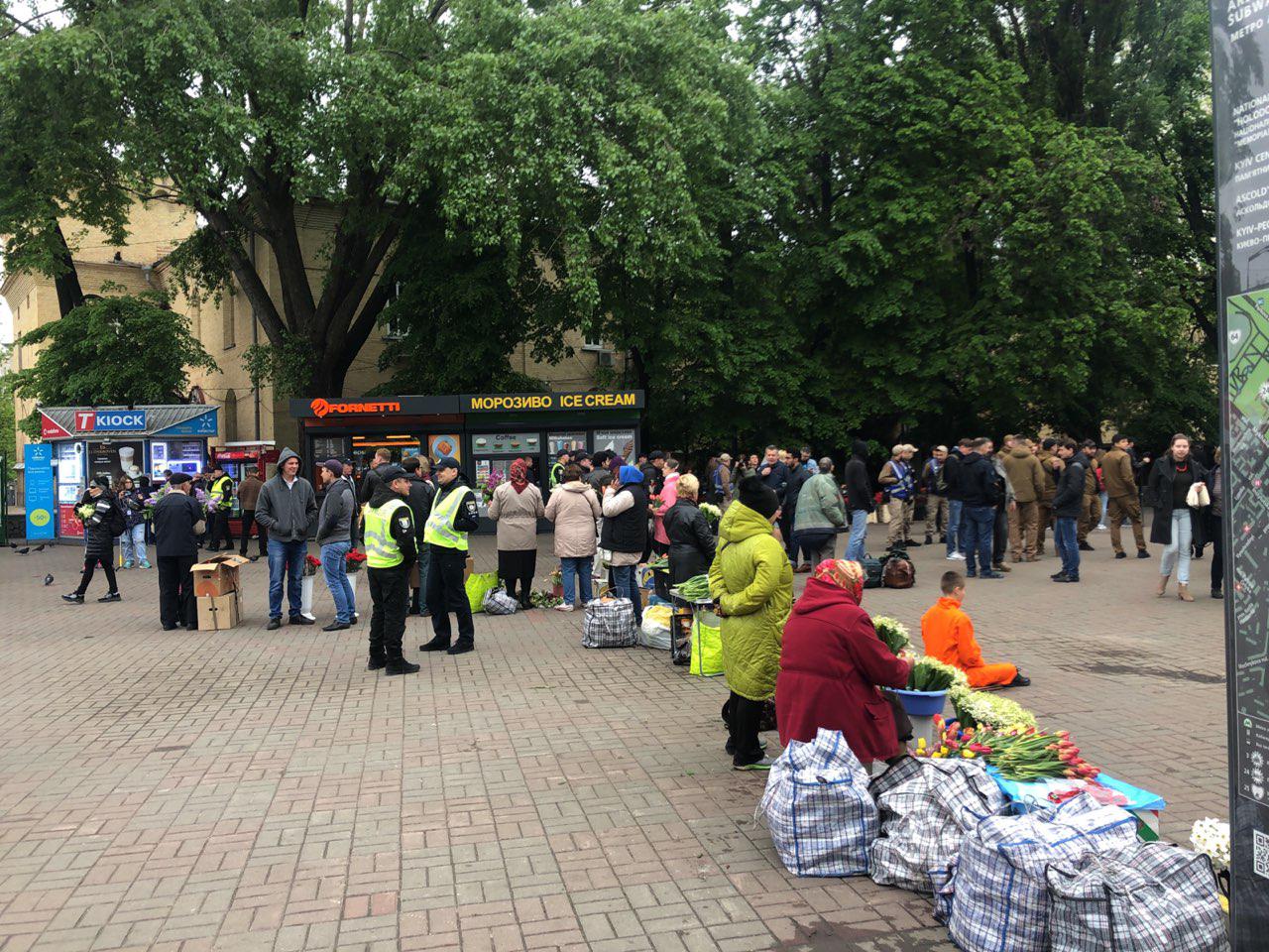 9:24 Рядом с метро развернулась буйная торговля цветами.