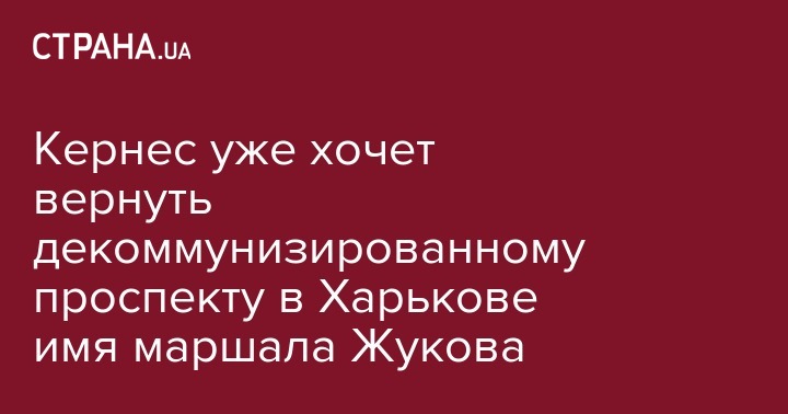 Мэр Харькова Геннадий Кернес призвал горожан поддержать петицию об обратном переименовании проспекта имени Петра Григоренко в проспект имени маршала Жукова. Об этом он написал на своей странице в Facebook.