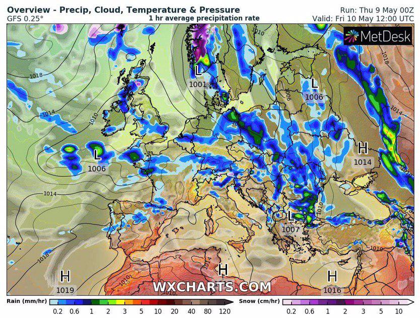 Синоптик предупредила, что 10 мая почти всю Украину ждут дожди. Карта