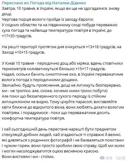 Фото: t.me/ Погода від Наталки Діденко