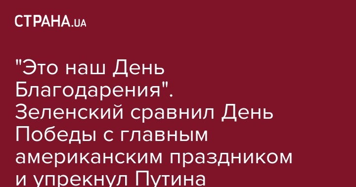 "Это наш День Благодарения". Зеленский сравнил День Победы с главным американским праздником и упрекнул Путина