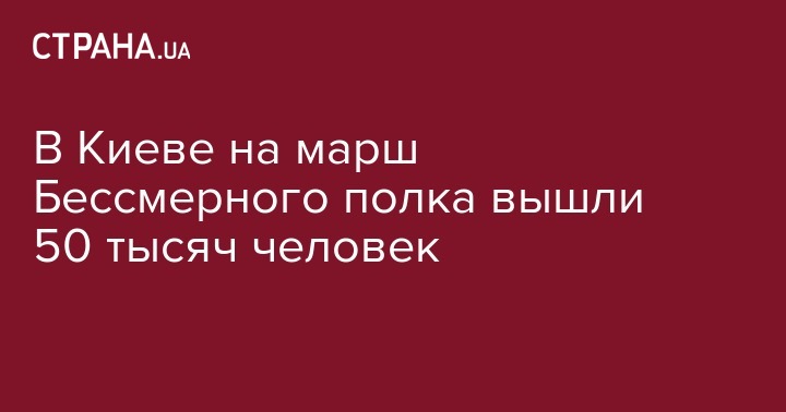 9 мая более 50 тысяч человек приняли участие в  прошедшем в Киеве марше Бессмертного полка, который прошел от метро Арсенальная и закончился у Вечного огня в парке Славы. Такие данные сообщили организаторы шествия.