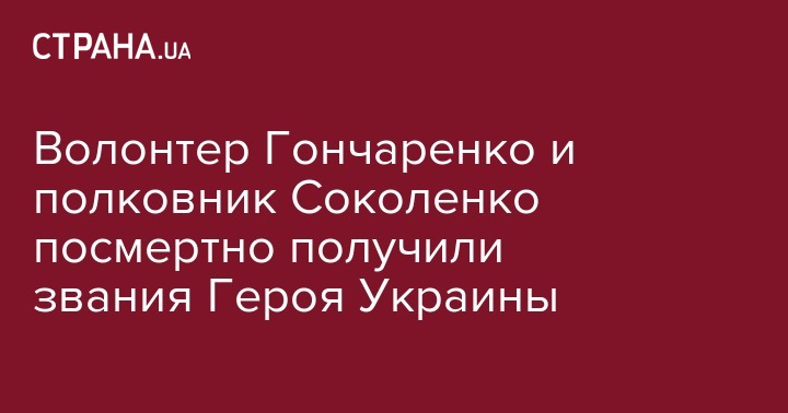 Волонтер Гончаренко и полковник Соколенко посмертно получили звания Героя Украины