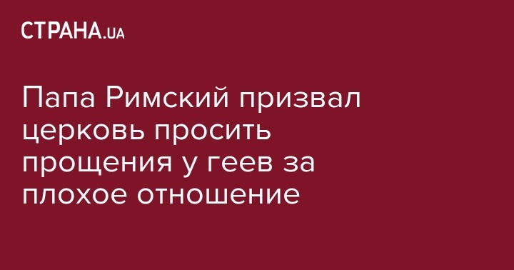 Папа Римский Франциск считает, что Римско-католической церкви следует извиниться перед представителями ЛГБТ-сообщества за прежнее отношение к ним. Об этом сообщает Reuters.