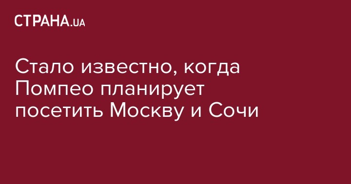 Госсекретарь США Майк Помпео намерен посетить Москву и Сочи с 12 по 14 мая, говорится в сообщении, распространенном в пятницу американским внешнеполитическим ведомством, сообщает "Интерфакс-Украина".