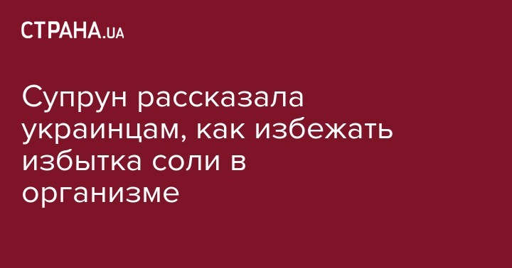 И.о. министра здравоохранения Украины Ульяна Супрун рассказала о том, какой вред здоровью может нанести избыток соли в организме. Об этом медик сообщила на своей странице в социальной сети Facebook.
