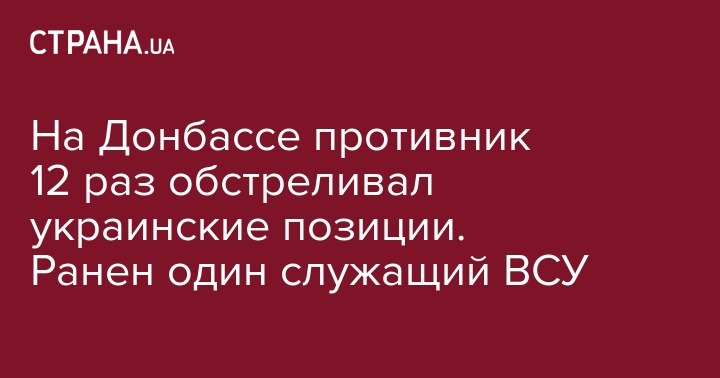 За прошлые сутки на Донбассе противник 12 раз обстреливал украинские позиции, один служащий ВСУ получил ранения. Об этом сообщает пресс-служба Операции объединенных сил на странице в Facebook.