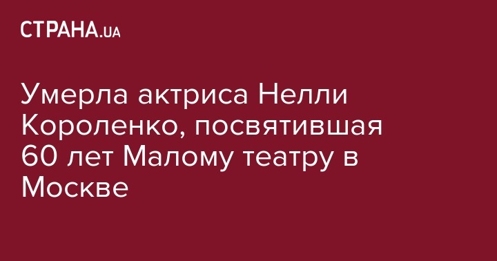 Умерла актриса Нелли Короленко, посвятившая 60 лет Малому театру в Москве