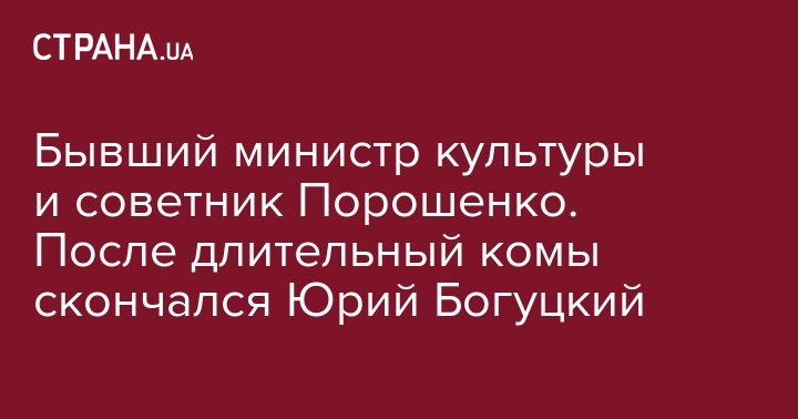Бывший министр культуры и советник Порошенко. После длительный комы скончался Юрий Богуцкий