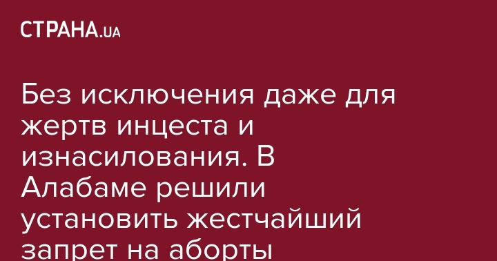 На собрании американского штата Алабама одобрили закон о запрете абортов. Он вступит в силу после того, как его подпишет губернатор. Правозащитные организации дали обещание сделать все возможное, для того, чтобы этот закон не вступил в силу.