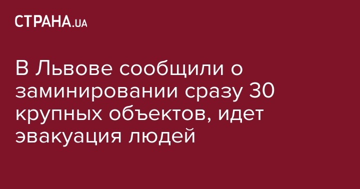 Во Львове в среду, 15 мая, неизвестный сообщил о минировании почти 30 объектов, среди которых международный аэропорт Львов, 7 гостиниц, 7 больниц и 13 домов. Об этом на своей странице в Facebook написал депутат Львовского городского совета Игорь Зинкевич.
