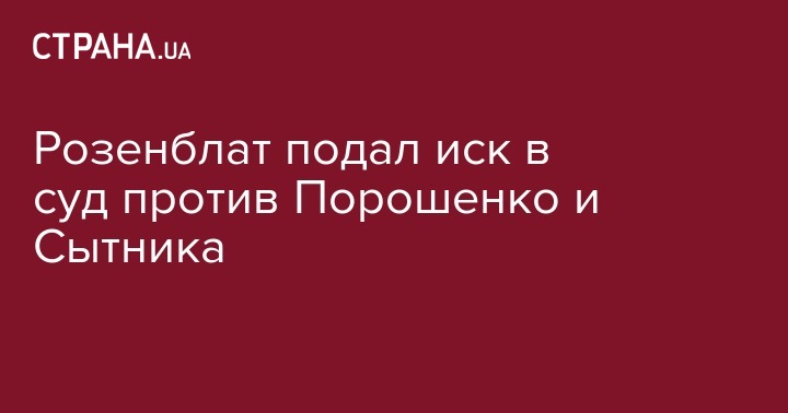 В Окружной административный суд города Киева поступил иск народного депутата Борислава Розенблатта к президенту Украины Петру Порошенко и директору НАБУ Артему Сытнику. Об этом сообщается на сайте ведомства.
