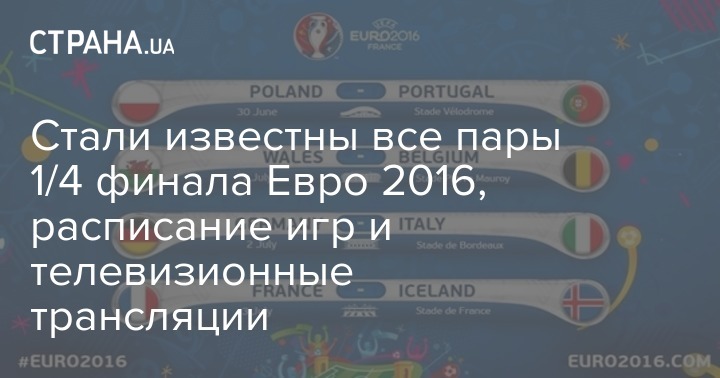 После завершения матчей 1/8 финала чемпионата Европы по футболу, что проходит на полях Франции, стали известны все пары сборных, которые сыграют в следующем раунде турнира.