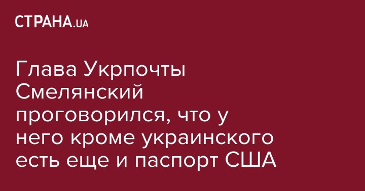 Скандально известный генеральный директор ОАО "Укрпочта" Игорь Смелянский признался, что имеет два паспорта - украинский и американский. Об этом написала на своей странице в социальной сети Facebook журналист Национальной общественной радиокомпании Светлана Мялик.
