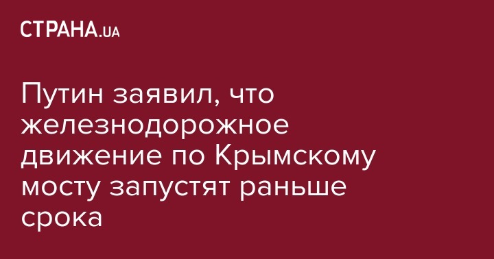 Путин заявил, что железнодорожное движение по Крымскому мосту запустят раньше срока
