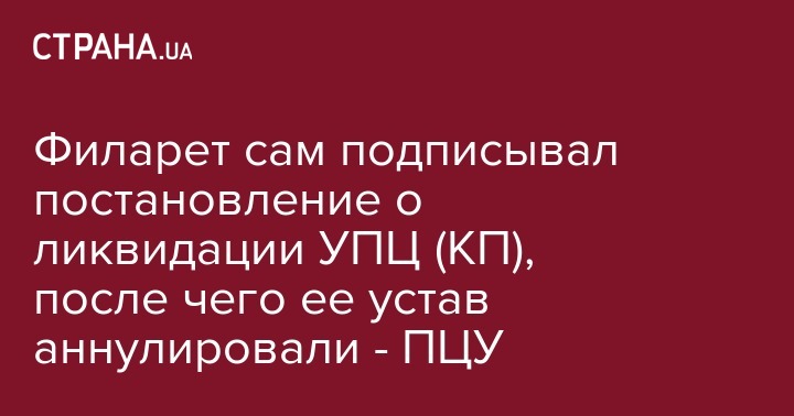 Филарет сам подписывал постановление о ликвидации УПЦ (КП), после чего ее устав аннулировали - ПЦУ