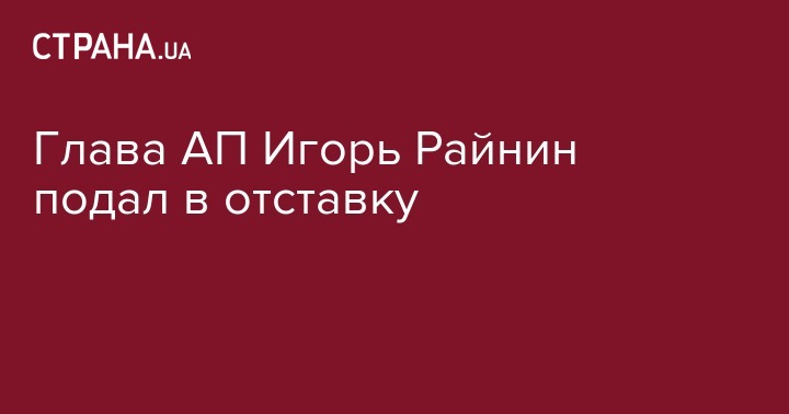 Глава Администрации президента Украины Игорь Райнин подал в отставку. Об этом со ссылкой на свои источники сообщили Украинские новости.