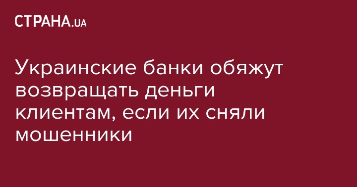 Украинские банки обяжут возвращать деньги клиентам, если их сняли мошенники