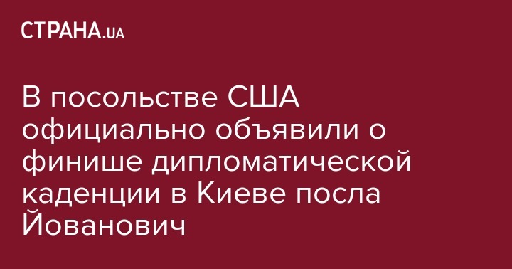В нем идет речь о трехлетней работе Йованович в Украине по продвижению партнерства между Украиной и США. Официально имя нового посла не объявляется, несмотря на то, что 20 мая Йованович завершает работу на своей должности.