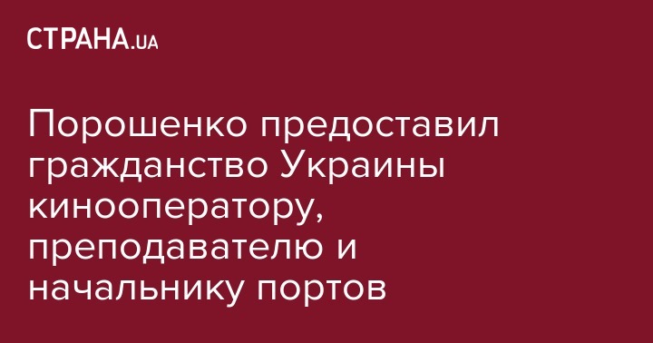 Президент Украины Петр Порошенко присвоил украинское гражданство еще трем людям: кинооператору Юрию Грузинову, преподавателю Киево-Могилянской бизнес-школы Михаилу Винницкому и главе администрации морских портов Украины Райвису Вецкагансу. Об этом сообщает пресс-служба главы государства.