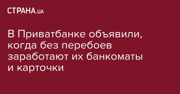 В Приватбанке заявили, что сбои в работе банкоматов и карточек, которые начались 19 мая, будут полностью устранены с 10:00 понедельника, 20 мая. Об этом со ссылкой на пресс-службу финучреждения пишет UBR.