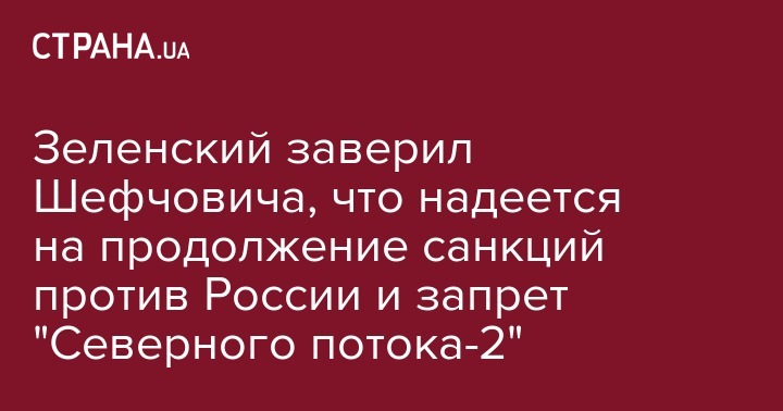 Зеленский заверил Шефчовича, что надеется на продолжение санкций против России и запрет "Северного потока-2"