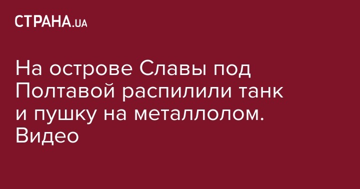 На острове Славы под Полтавой распилили танк и пушку на металлолом. Видео