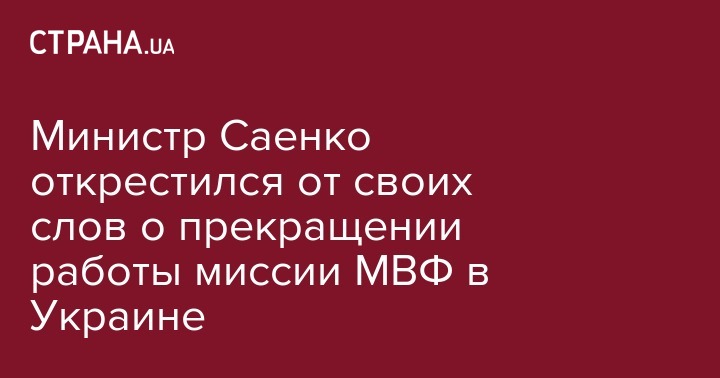 Министр Кабинета министров Украины Александр Саенко отказался от своего заявления относительно прекращения миссии Международного валютного фонда (МВФ) в Украине. Об этом он сказал агентству Интерфакс-Украина в кулуарах форума "Ответственность, доверие, инклюзивность: видение реформ завтрашнего дня. Предложения гражданского общества" в Киеве в среду.