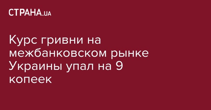В четверг, 23 мая, курс гривни на межбанковском валютном рынке Украины снизился на 9 копеек - до 26,37 грн/$1 с 26,28 грн/$1 в предыдущий рабочий день. Об этом передает агентство "Интерфакс-Украина" со ссылкой на дилеров коммерческих банков.