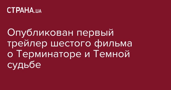 Киностудия 20th Century Fox опубликовала первый трейлер ленты "Терминатор: Темная судьба", которая станет шестым фильмом франшизы "Терминатор" и сиквелом картин "Терминатор" и "Терминатор 2: Судный день". Видео появилось в YouTube.