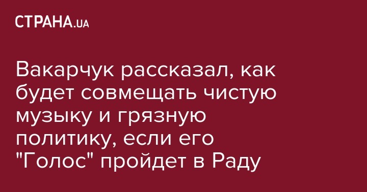 "Я четко осознаю, что если попадем в Верховную Раду, то основное время и усилия будут занимать политика и работа на благо людей. Но я оставляю за собой право писать музыку и иногда давать концерты", - сказал Святослав Вакарчук.
