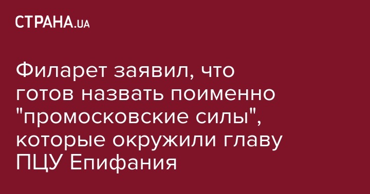 Почетный глава ПЦУ Филарет считает, что предстоятеля ПЦУ Епифания окружили "промосковские силы". Об этом он сообщил после заседания синода ПЦУ в Софии Киевской, пишет "Украинская правда"