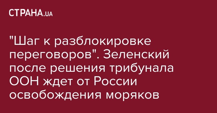 Президент Украины Владимир Зеленский считает, что выполнение Россией приказа трибунала ООН об освобождении украинских моряков и кораблей может стать первым сигналом о готовности к прекращению конфликта с Украиной. Об этом он написал в субботу в Facebook.