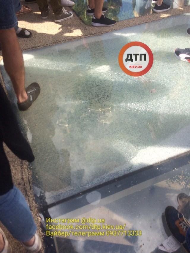 "Новое стекло на новом мосту. Все покрылось трещинами и паутинками, проверять на прочность не рекомендуем", - опубликовал фотографии паблик dtp.kiev.ua.