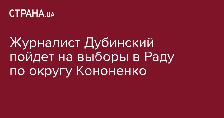 Шеф-редактор управления журналистских проектов телеканала "1 + 1" Александр Дубинский заявил о своем намерении пойти на выборы в парламент по мажоритарному округу, в котором также будет баллотироваться лидер фракции БПП в парламенте Игорь Кононенко. Об этом он в понедельник, 27 мая, сообщил на своей странице в Facebook.