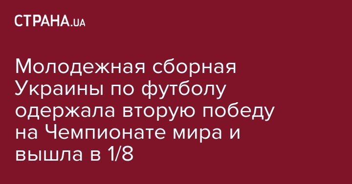 Молодежная сборная Украины по футболу одержала вторую победу на Чемпионате мира и вышла в 1/8