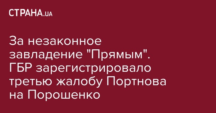 "В центральный аппарат бюро государственных расследований поступило третье (заявление Портнова относительно обвинения в совершении преступлений Порошенко - прим. ред). Оно уже зарегистрировано и касается совершения возможных коррупционных преступлений, связанных в результате приобретения телеканала "Прямой" касательно легализации доходов, полученных коррупционным путем по предварительному сговору группой лиц по ч.2 ст.209 УК Украины", - сказали в пресс-службе.