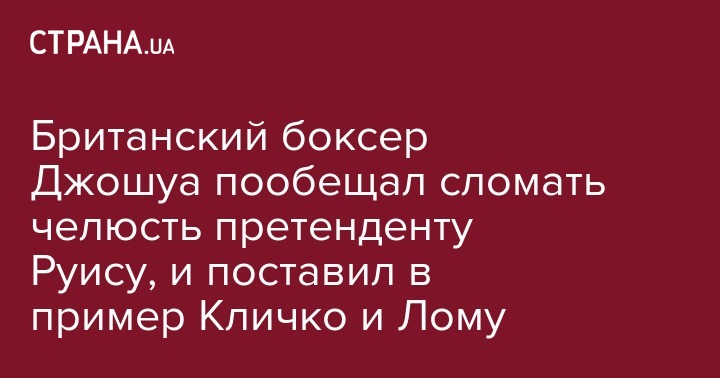 "Если Руис будет и дальше слишком много болтать перед боем - я сломаю ему челюсть и причиню столько боли, сколько он не получал за всю карьеру. Но если он хочет провести хороший поединок, то ему лучше начать уважительно ко мне относиться, тогда после боя мы пожмем руки, как это делают настоящие бойцы. Я всегда уважал таких боксеров, как Кличко и Ломаченко, - эти ребята заработали себе имя мастерством и упорной работой и никогда не оскорбляли своих соперников", - заявил Джошуа.