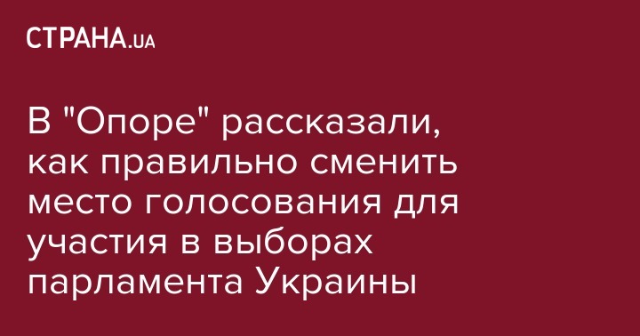 В общественной организации "Опора" сообщили, что гражданам Украины, которые хотят изменить место голосования перед выборами парламента Украины, можно сделать для этого несколько простых шагов.