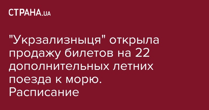 "Укрзализныця" назначила 22 дополнительных летних поезда и дополнительные рейсы графиковых поездов в направлении морских курортов Украины. Об этом сообщается на сайте ведомства