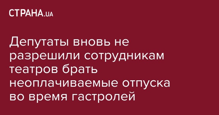 Отметим, что закон предусматривает право для работников театров прописывать в контракте индивидуальный предельный срок отпуска без сохранения зарплаты. Ранее украинский парламент уже отклонял подобный законопроект.